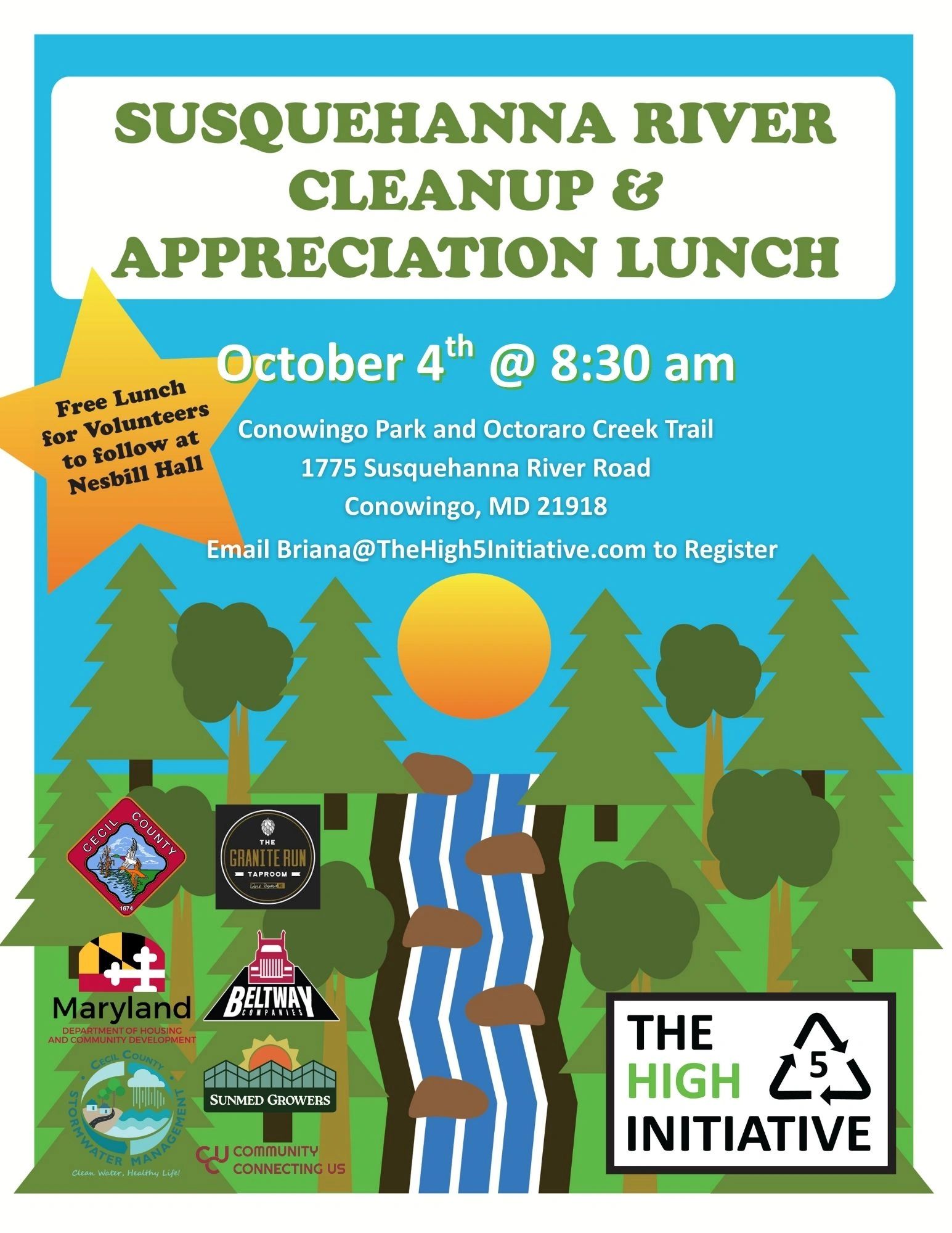 Join us on October 4th at the Susquehanna River Cleanup! This will be our last cleanup of the season and as a thank you to all of the amazing volunteers who have helped this year, we will be holding our annual appreciation lunch. Thank you to Community Connecting Us for allowing us use of their awesome space and to Granite Run Taproom for preparing the delicous food.